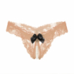 String ouvert dentelle perle petit noeud devant Taille unique Coloris: Noir, Beige, Rouge, Fuchsia, Rose clair , Bleu