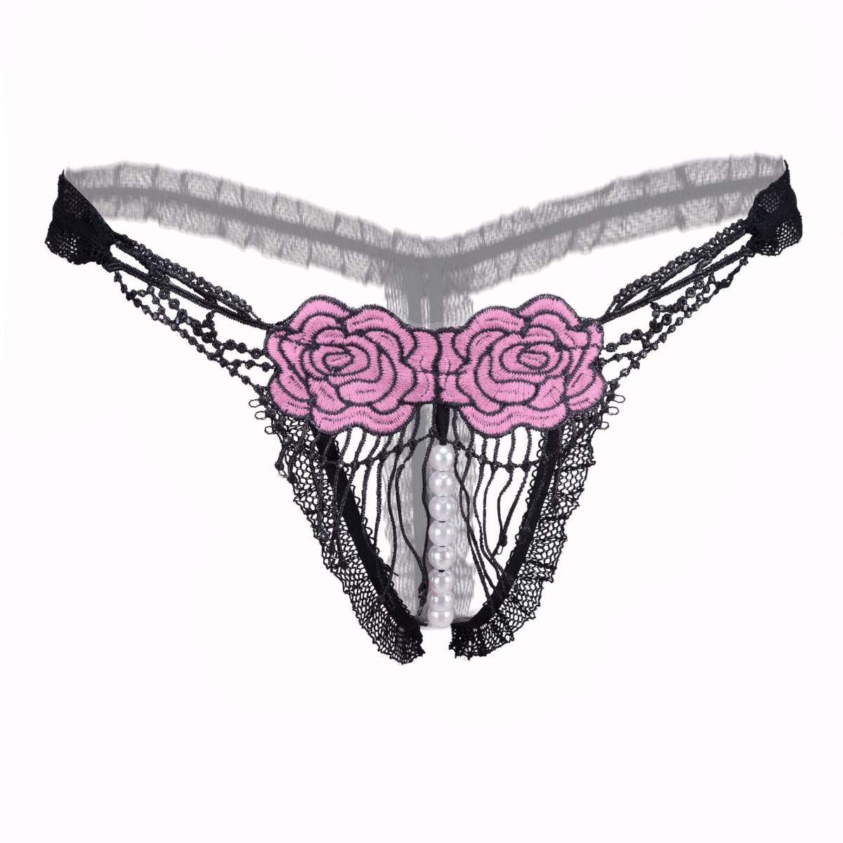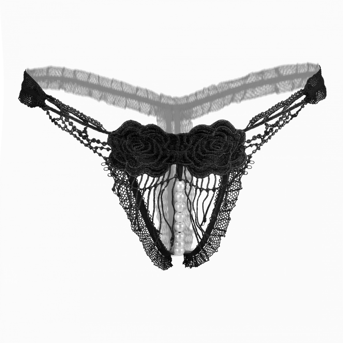 String ouvert dentelle fleur rose Taille unique Coloris: Noir,Rouge, Rose clair, Fuchsia,Bleu, Violet